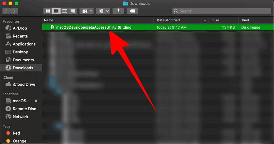 The ‘Downloads’ screen would lead you to the next window containing the macOS beta package option. Double click on it.