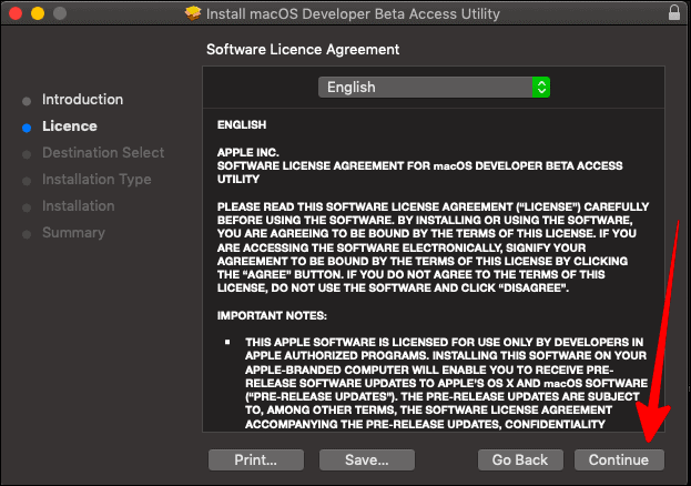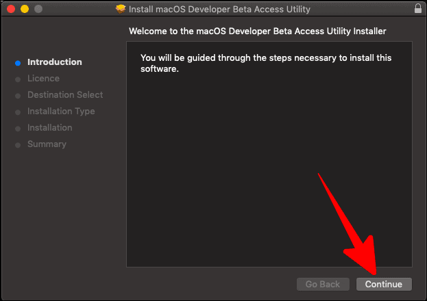 You would now be looking at the ‘Beta Access Utility Installer’ window. This is essentially your guide through the entire initial installation process. Click on ‘Continue’ on the ‘Introduction’ page of the window to proceed.