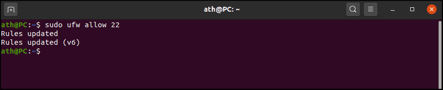 With the Firewall running, we can finally set up the firewall rules. Firstly, enable port 22 to allow SSH connections. SSH is needed to remotely access the desired server.