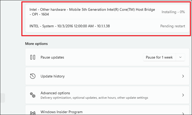 Windows will download and install the selected drivers. You can monitor the progress on the Windows Update screen.