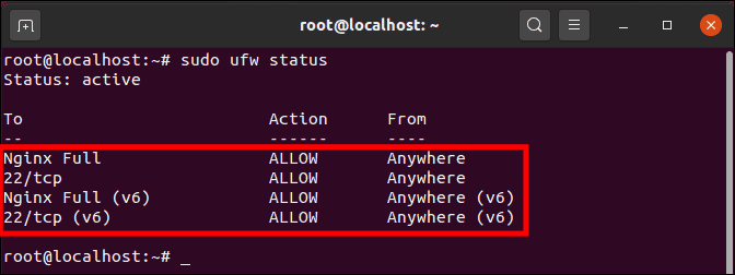 Thus, to access the Nginx server from other systems, you’ll need to enable the ufw and set it up correctly to allow traffic on port 80 and 443. Before you enable ufw, know that if you are setting up Nginx on a remote server, first update the ufw rules to allow ssh by running:
