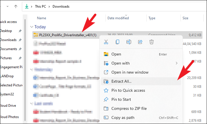 Step 2: After the download completes, navigate to your default Downloads folder. Locate the downloaded .ZIP file, right-click it to open the context menu, and select 'Extract All'. This will extract the contents into a new folder and open a separate window.