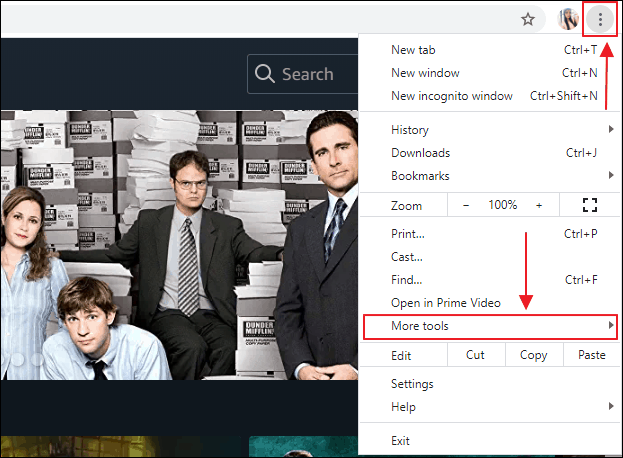 Step 1: Open Chrome on your Windows 10 PC and visit the Amazon Prime Video website. Once there, click on the Customize and control Google Chrome menu, which appears as three vertical dots in the top-right corner of the browser window.