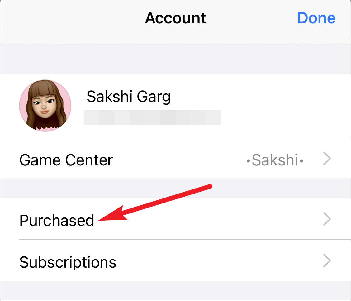 Your account information will open. Tap on the ‘Purchased’ option.