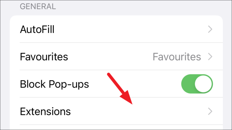 Next, scroll down and tap on the ‘Extensions’ tab present under the ‘General’ section on the Safari settings page.