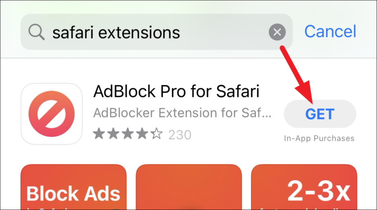 After that, click on the ‘Get’ button present on each individual extension tile to install your desired extension on your iOS device.