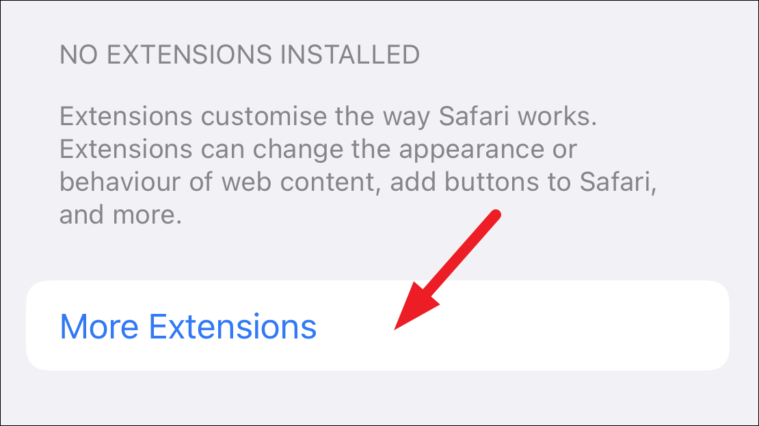 Next, click on the ‘More Extensions’ button present on the screen. This will redirect you to the ‘Safari Extensions’ page on the App Store.