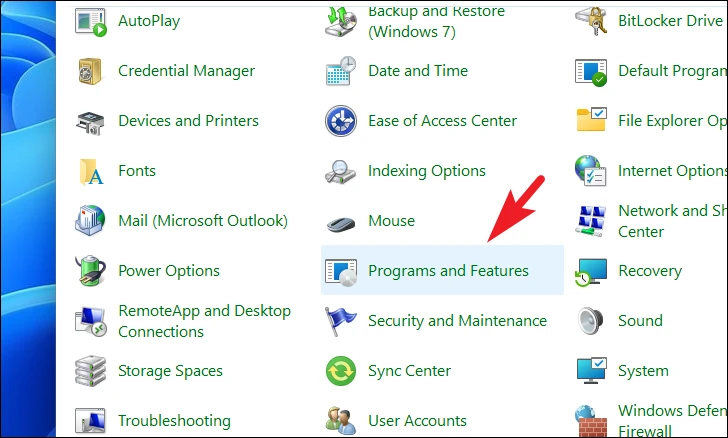 Step 2: In the Control Panel, click on 'Programs and Features'.