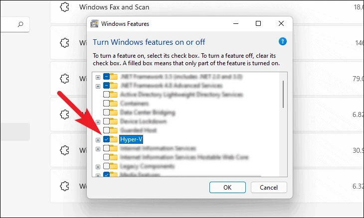 Step 5: Ensure that the 'Hyper-V' option is also checked to enable virtualization features fully.