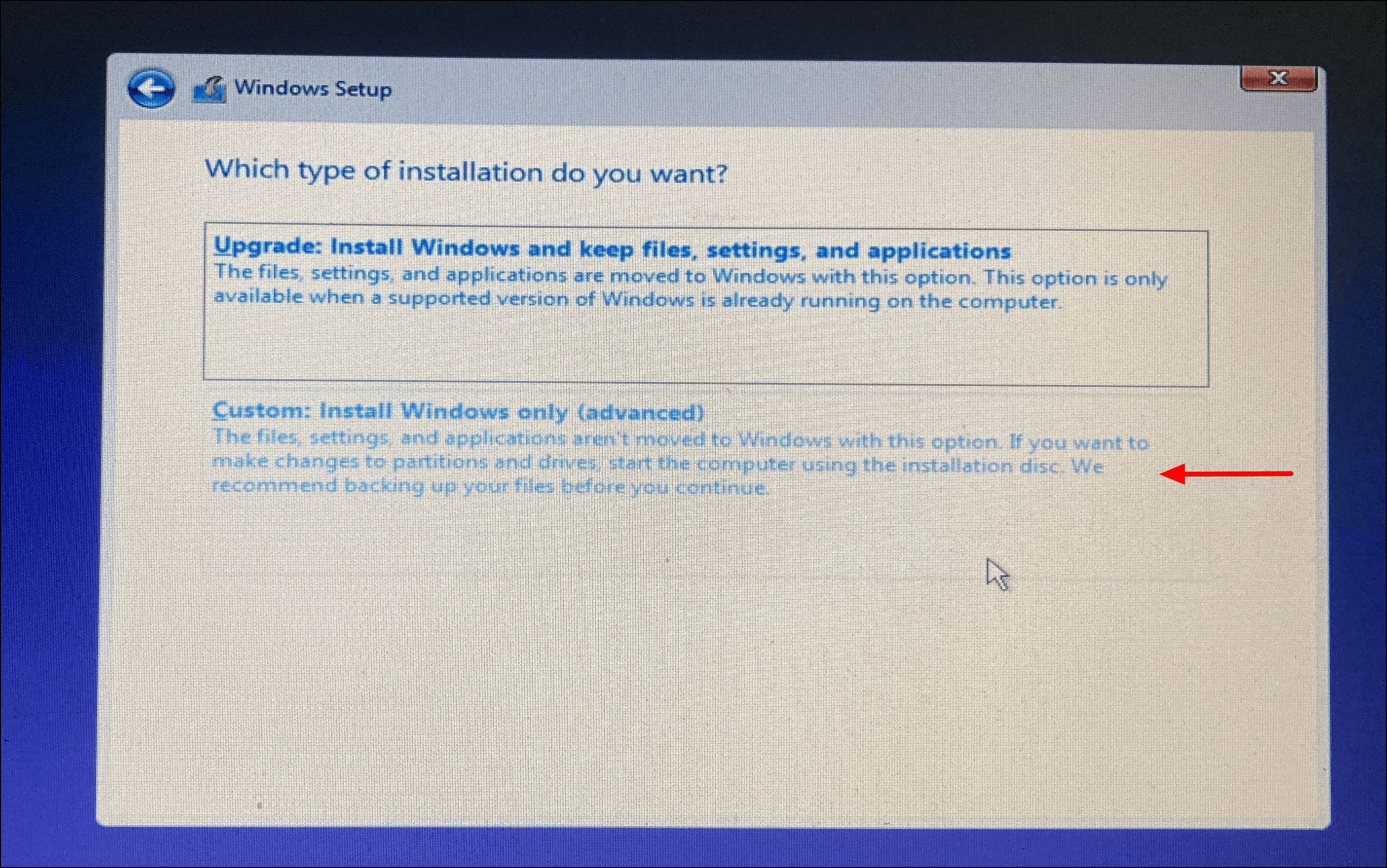 Note: Opting for the Custom installation will erase all data on the selected drive. Ensure you have backed up any important files before proceeding.