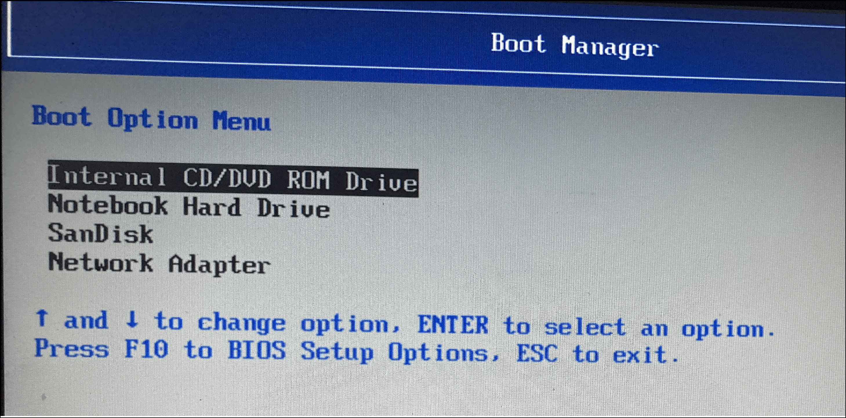 - Use the arrow keys to select your USB drive from the list of boot options, then press ENTER.