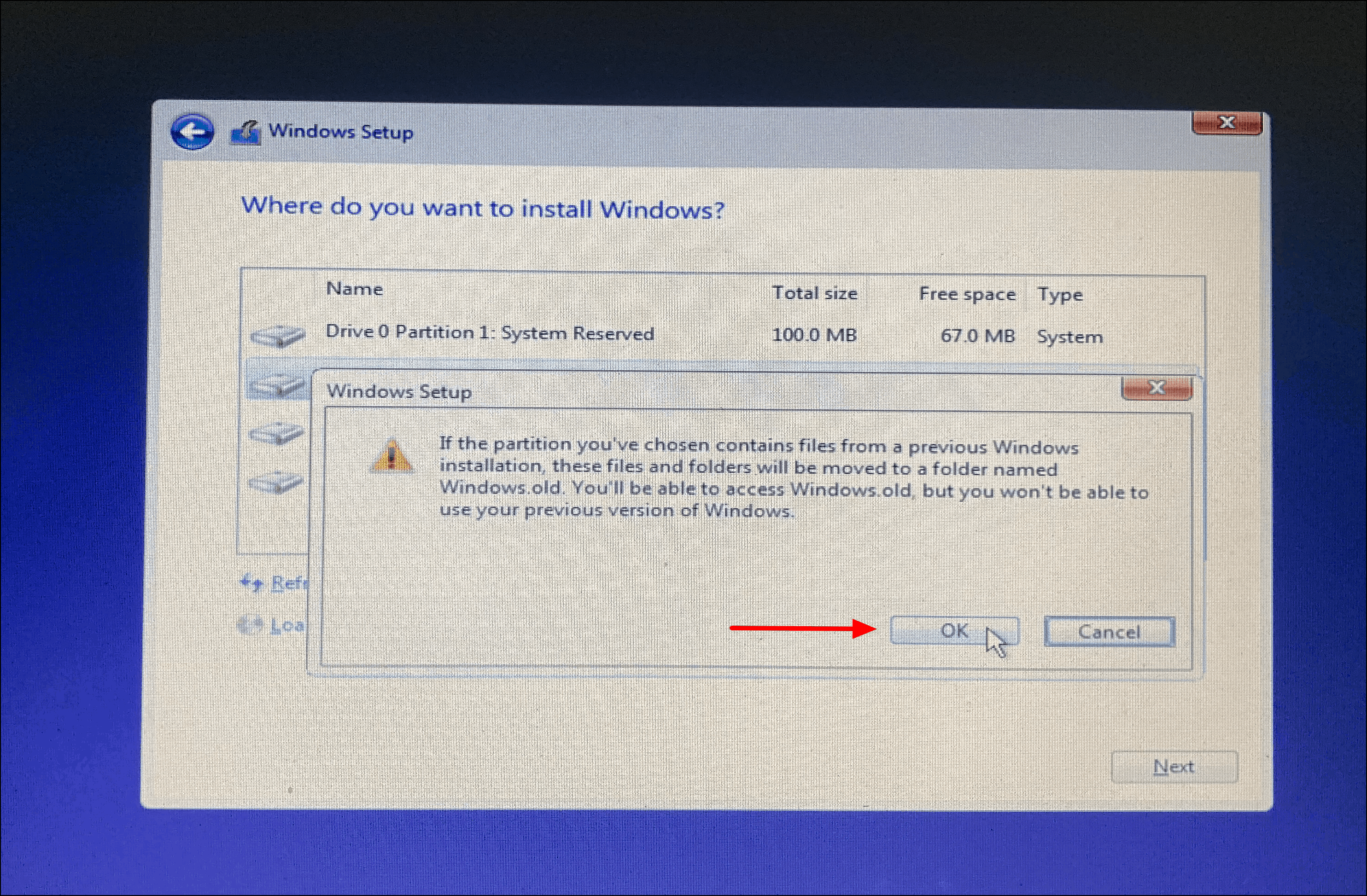 - If a warning appears about existing files being moved or overwritten, click OK to confirm and continue.