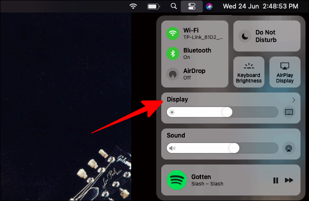 In the control’s drop-down, click on the ‘Display’ option. You can click on the option, the arrow, or even the icon, just not the slider, of course.