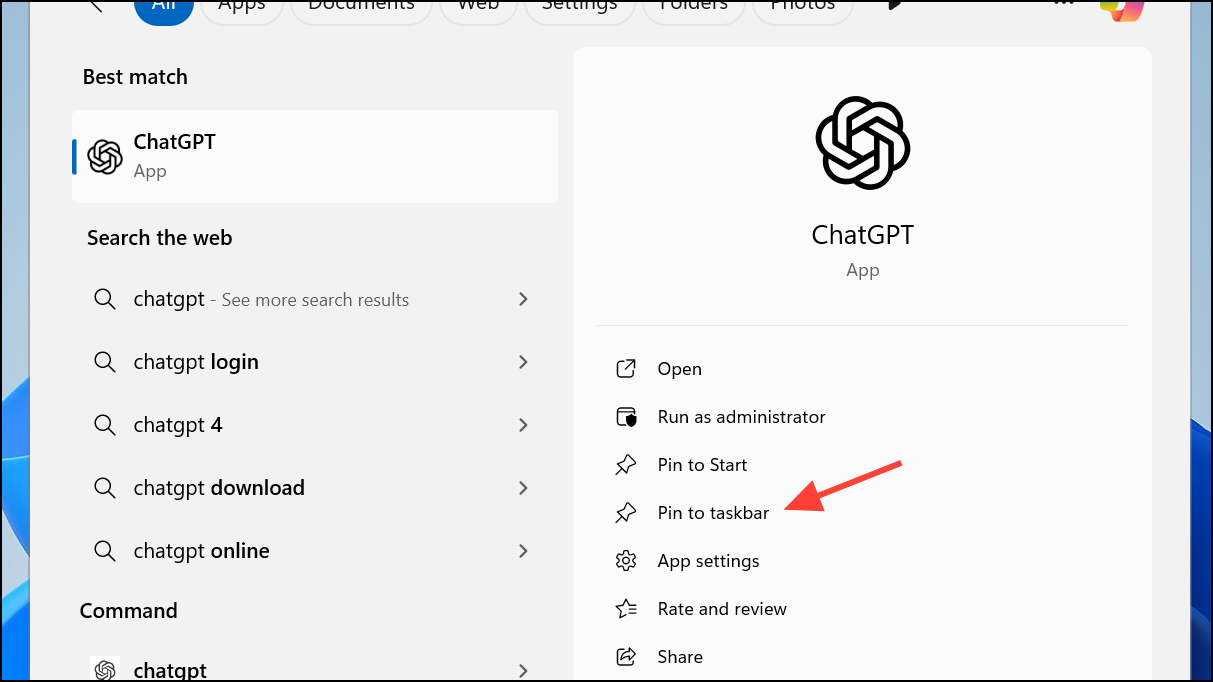 Step 3: Once installed, the ChatGPT PWA will be accessible from your Start menu. Pin it to your taskbar for faster access by right-clicking the app and selecting "Pin to taskbar."