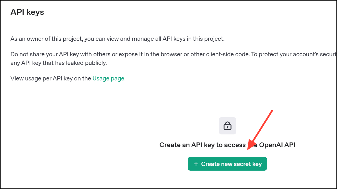 Step 3: Create an OpenAI account and obtain your API key from the API keys section of your account dashboard.