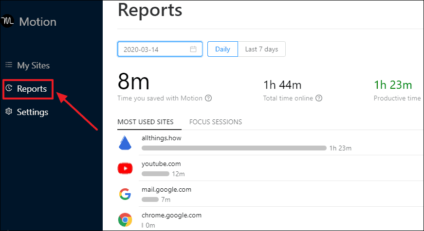 Motion also provides detailed daily and weekly reports of the websites you visit most frequently. These reports help you analyze your online habits and identify areas where you might improve your productivity.