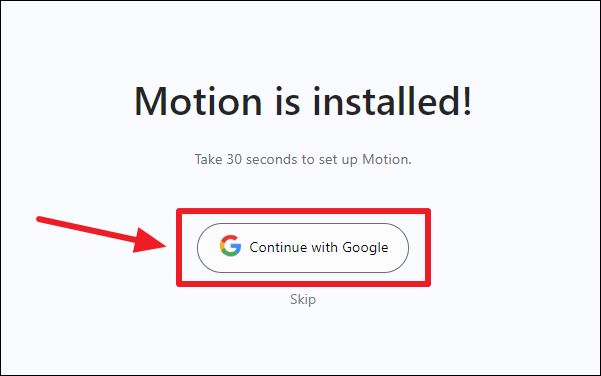 After installing the extension, you'll be redirected to the Motion setup page. Here, you can choose to log in with your Google account for a personalized experience, or you can skip this step if you prefer not to create an account. Motion works without an account as well.