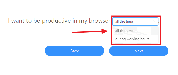 If you prefer Motion to be active at all times, perhaps because you use your computer primarily for work, you can select the 'all the time' option from the dropdown menu next to the line that says 'I want to be productive...'