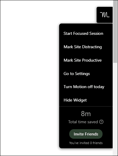 Once set up, Motion adds a floating widget to every page you visit in your browser.