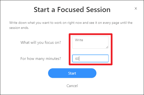 During the Focus Session, your task and the remaining time will be displayed on all websites you visit, serving as a constant reminder to stay on track.