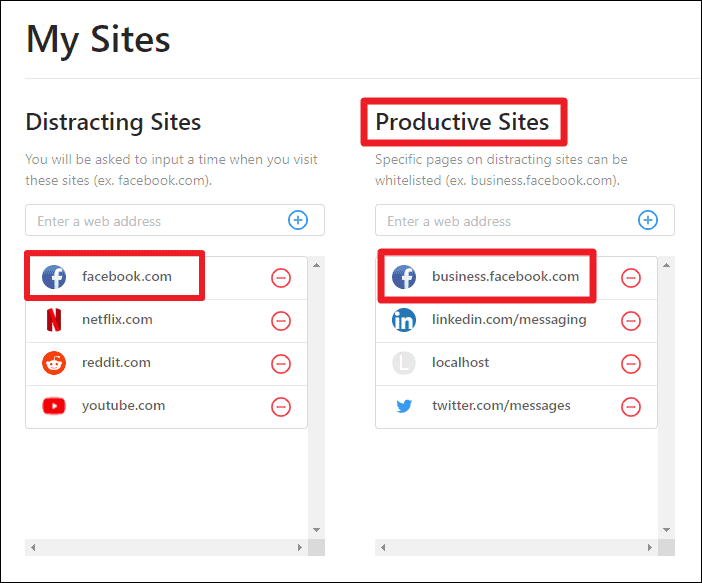 If you need unrestricted access to specific pages on a distracting website, Motion allows you to whitelist these pages. For example, you might want to block Facebook in general but still access your business pages.