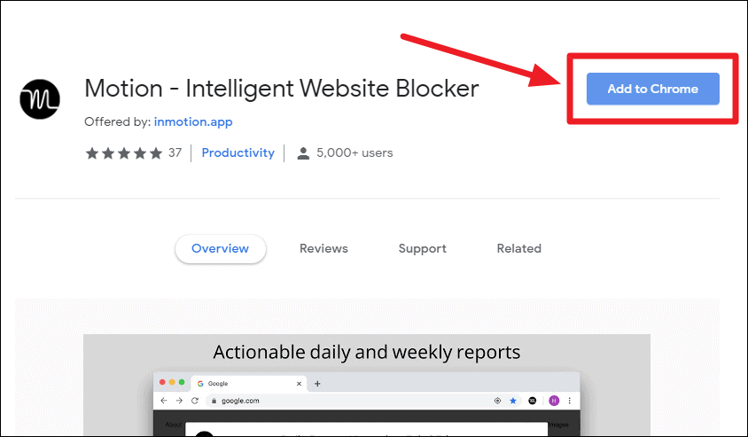 You can download the Motion extension from the Chrome Web Store using the link below. Click on 'Add to Chrome' to install the extension.