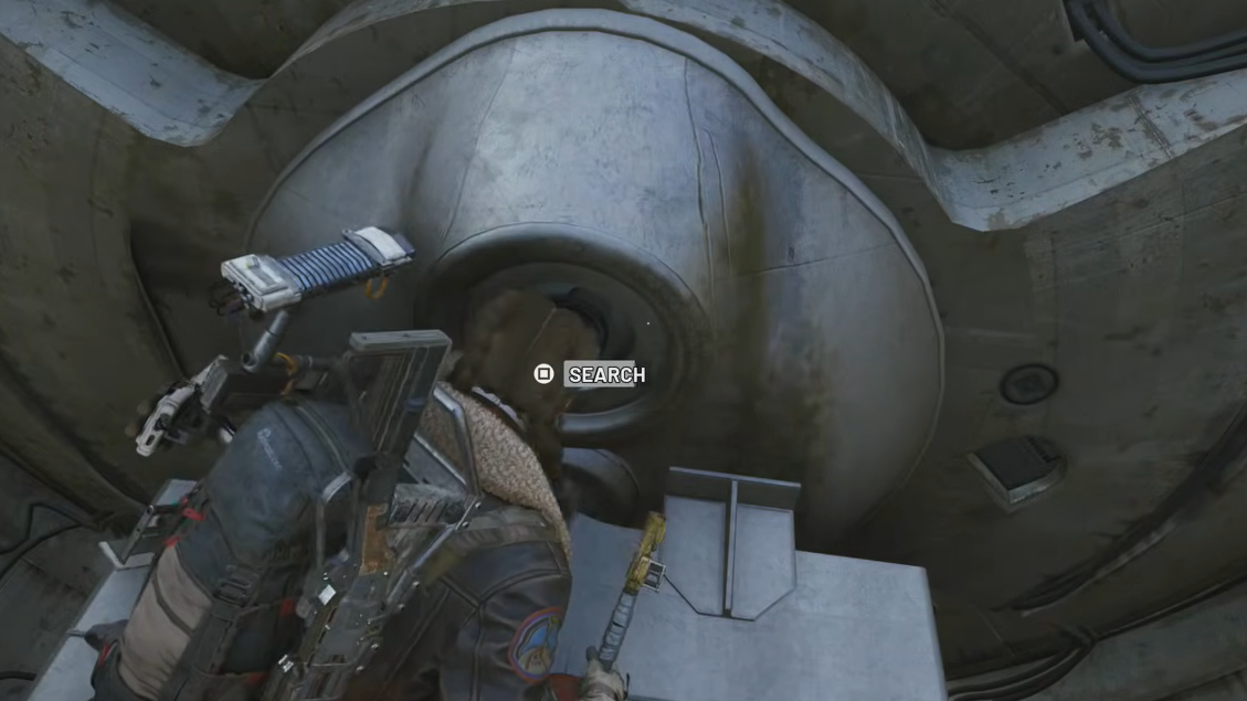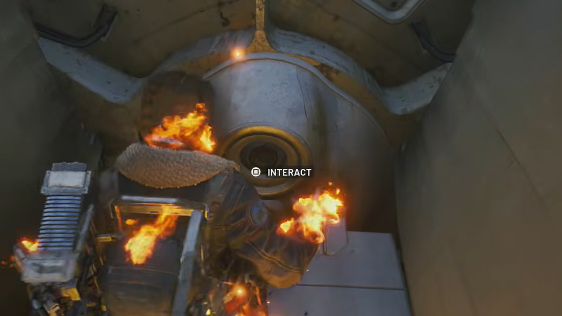 Step 4: Exit the cylinder and climb onto the newly formed platform above. Dodge the flames one more time to reach a lootable container on the back wall. Searching this container completes the quest objective and shuts down the fire traps.