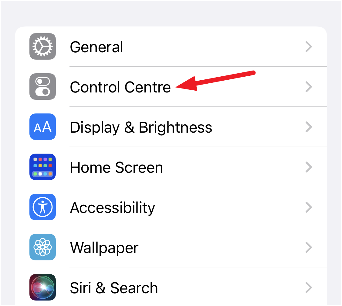 To add it to the Control Center, go back to settings and tap the option for ‘Control Center’.