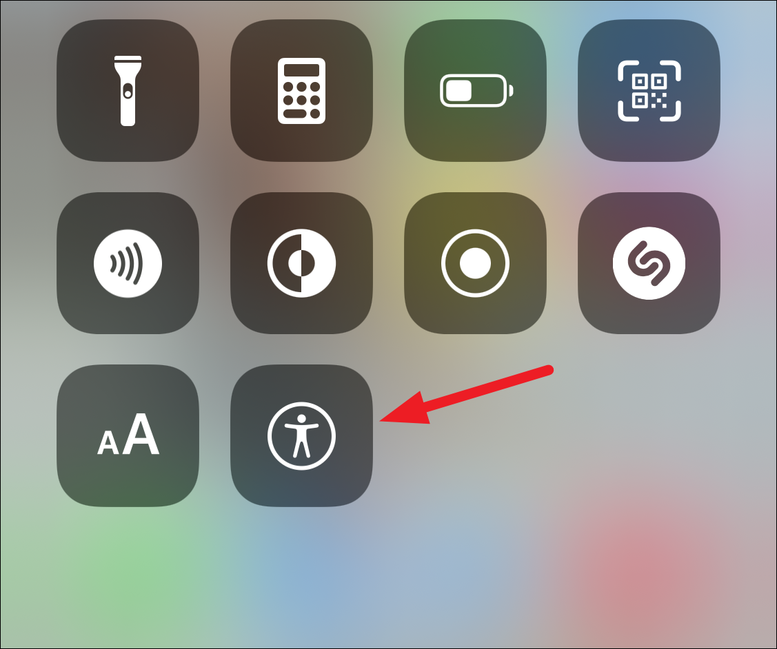 To enable it from the Control Center, swipe down from the upper-right corner of the screen to open it. Then, tap the option for ‘Accessibility Shortcut’.