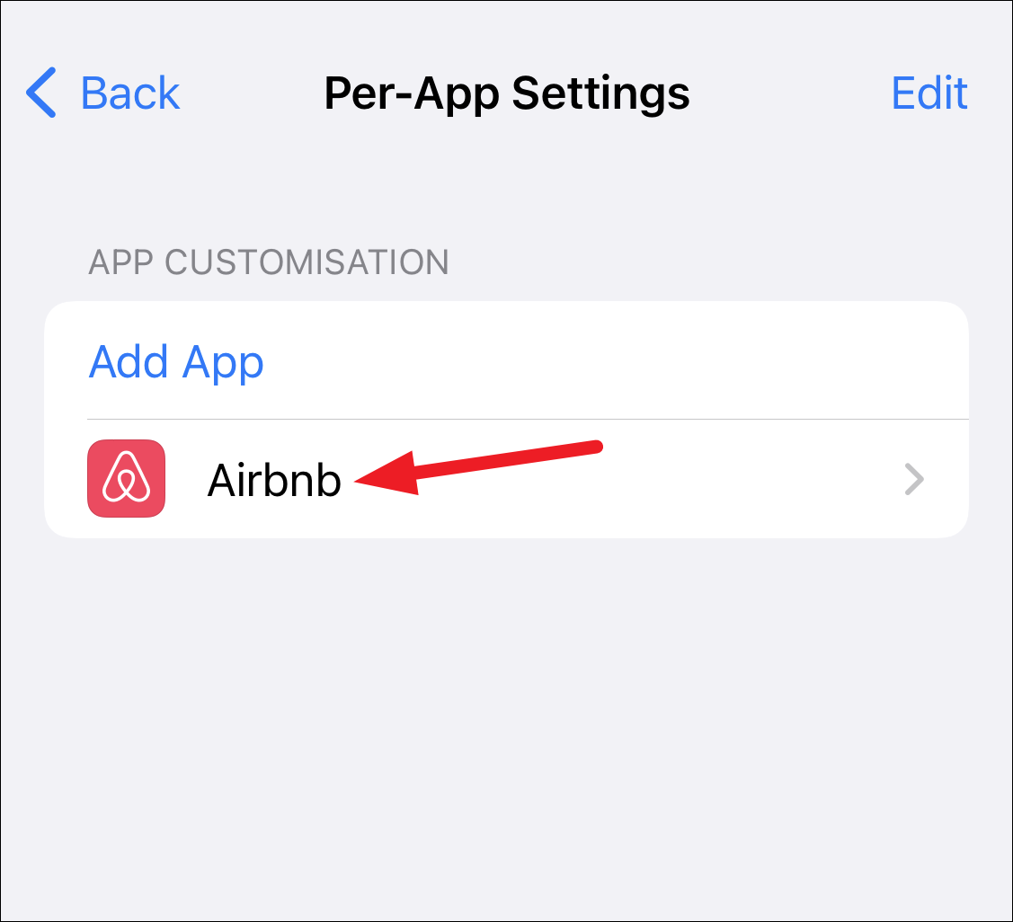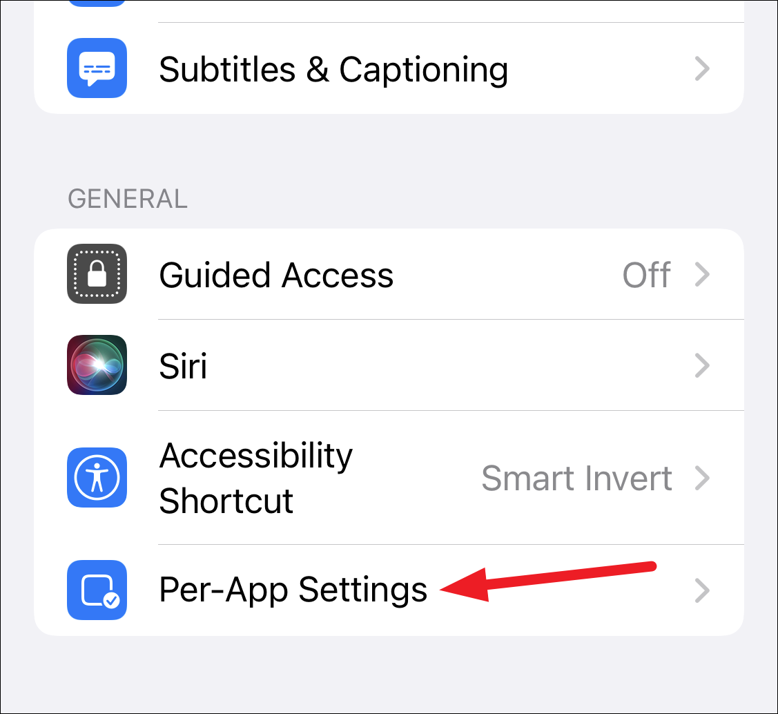 Open Accessibility settings on your iPhone and scroll down. Then, tap the option for ‘Per-App Settings’.