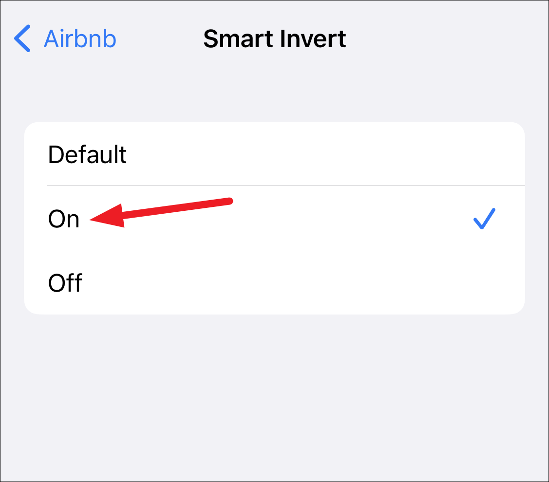 Then, select ‘On’ from the options. Now if you go and open that app, the colors will be smarty inverted.