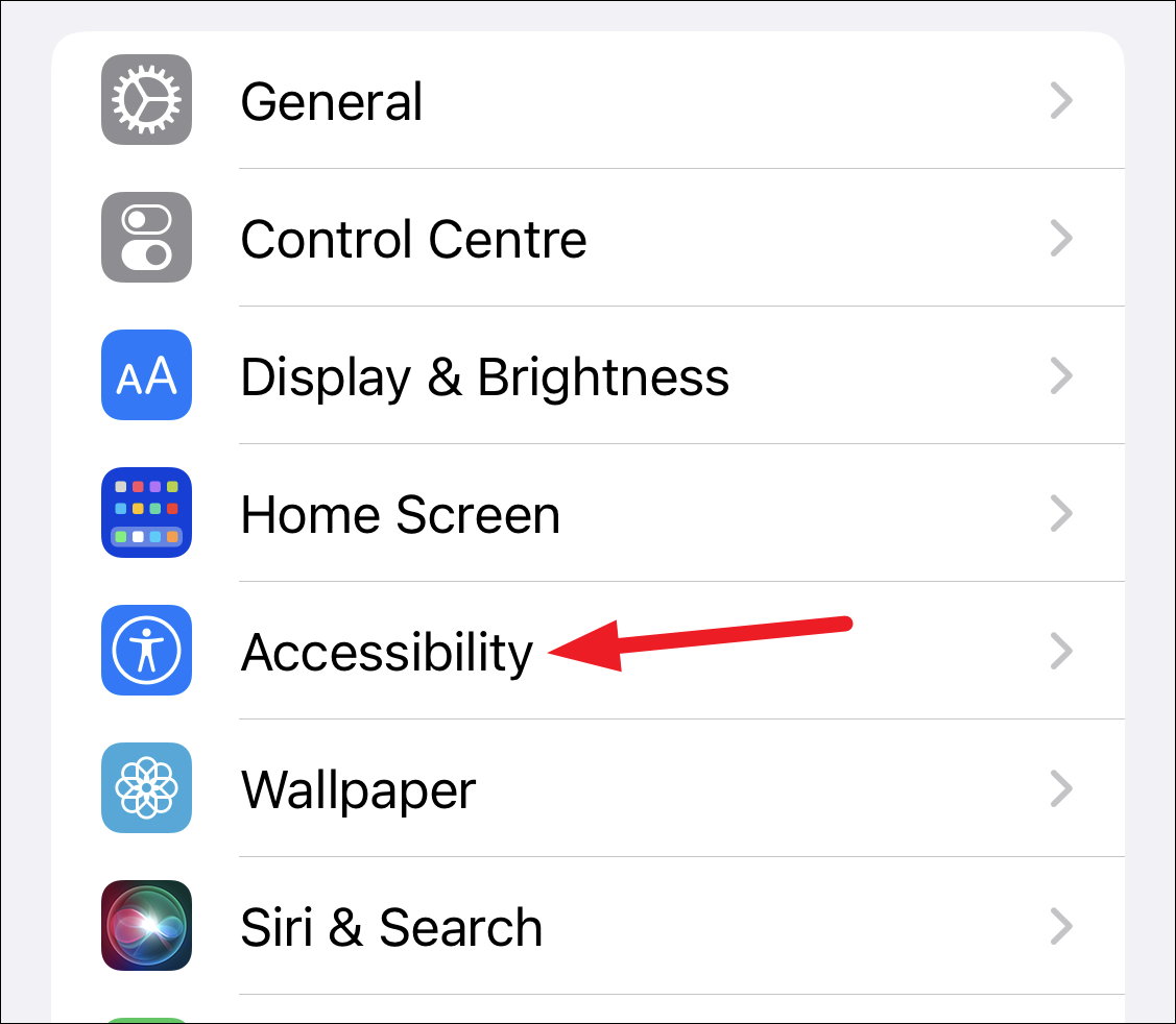 Whether you want to use smart or classic invert, the steps are the same for both. Open the Settings app and scroll down to ‘Accessibility’.