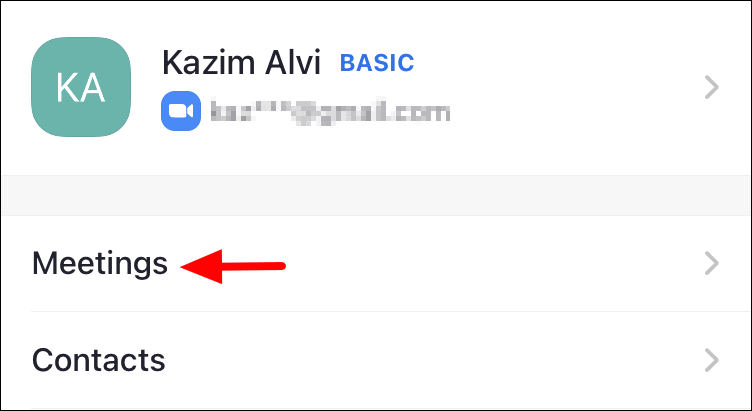 In the ‘Settings’ screen, you will find various meeting-related and app-related settings. To change the mirrored video setting, tap on ‘Meetings’, the first option.