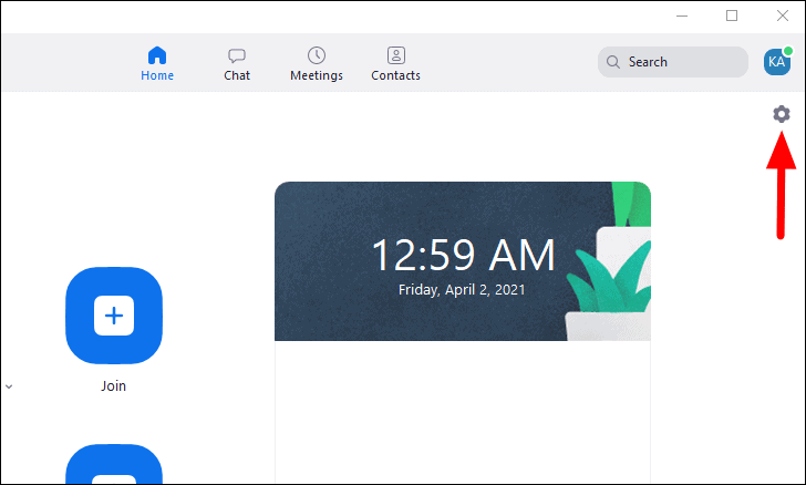 To invert your camera on Zoom, open the desktop app and then click on the ‘Settings’ icon near the top-right corner of the screen.