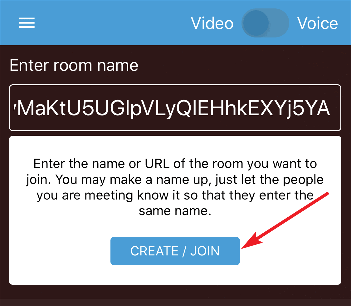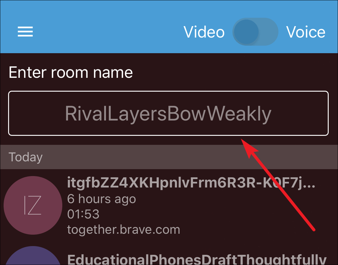 Step 2: Open the Jitsi Meet app. There's no need to register an account. Tap on the text box beneath 'Enter room name' and paste the Brave Together meeting link.