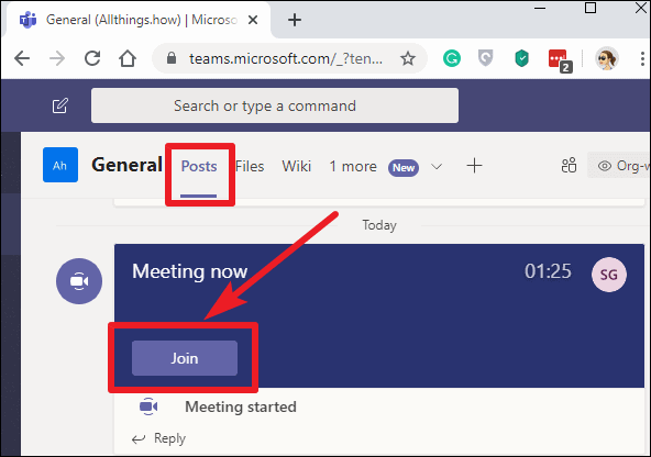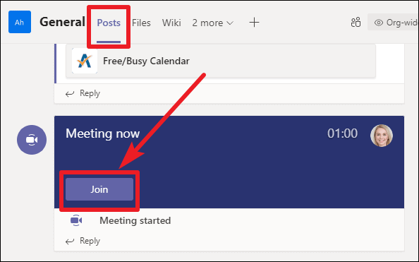 Step 4: In the channel, tap the 'Join' button within the meeting post.