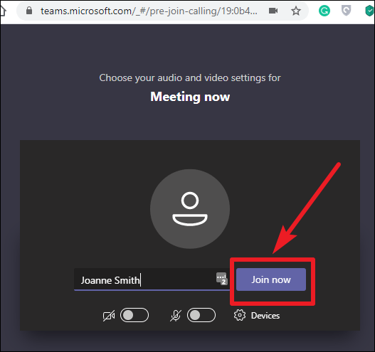 Step 4: Enter your name, which will be visible to other participants. Adjust your audio and video settings as needed, then click 'Join now'.