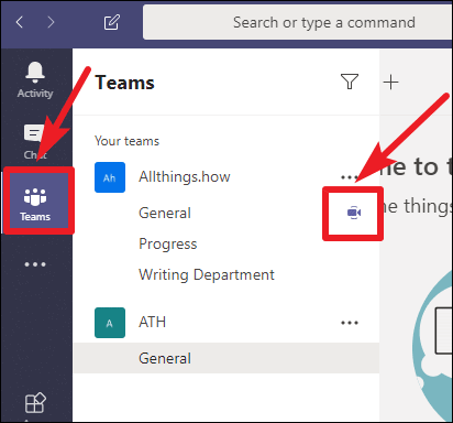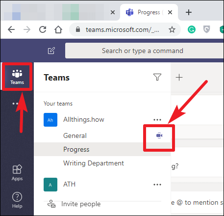 Step 3: Once the web app loads, click on 'Teams' from the left-hand menu. Find the channel with the ongoing meeting; it will have a 'video camera' icon beside it. Click on that channel.