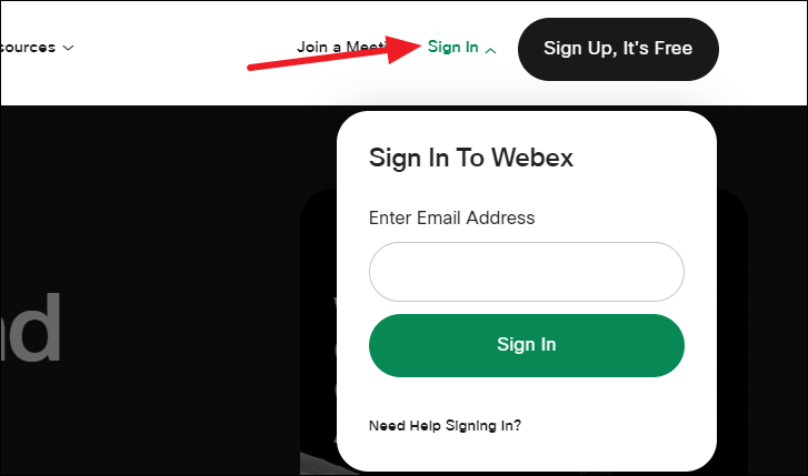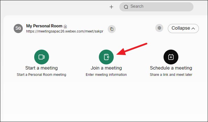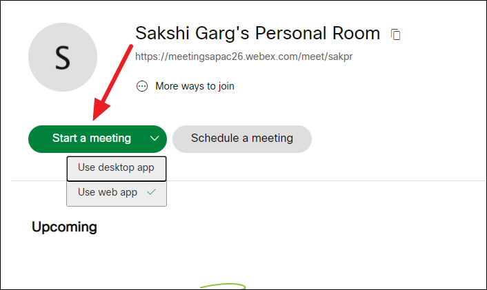 You can also start meetings or join them from the Webex web app after signing in to your account. Go to webex.com to use the web app.
