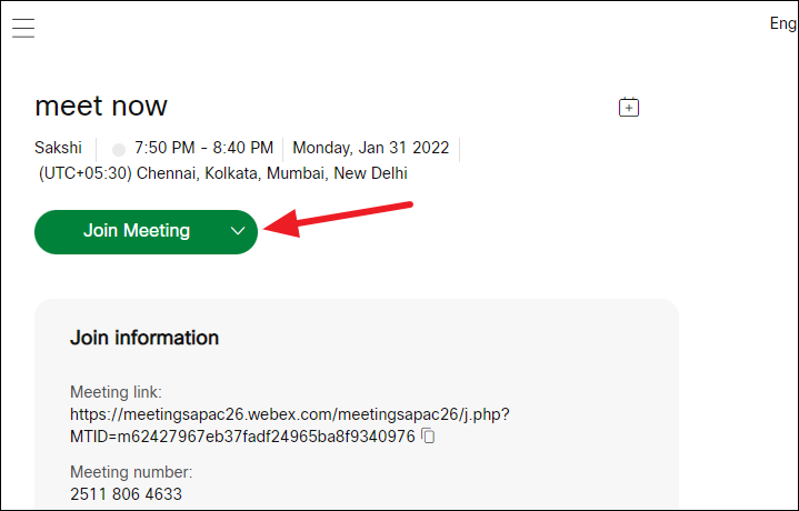 You’ll reach the meeting information page. Click ‘Join meeting’ to join the meeting.