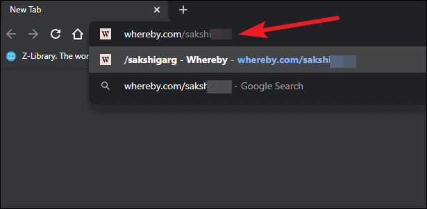 You can also join a room directly by entering the link in the browser’s address bar. Go to the address bar, type whereby.com/Room-Name and press the enter key.