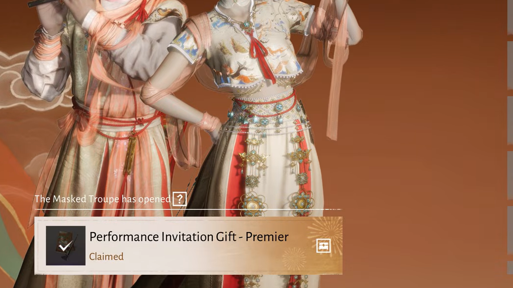 The Masked Troupe's signature weapon has been confirmed as silk ribbons and a drum, drawing from the sect's Tang Dynasty performing arts origins. No release window has been announced, and the weapon's combat mechanics remain unconfirmed. The theatrical theme suggests a performance-inspired fighting style, but specifics are still unknown.