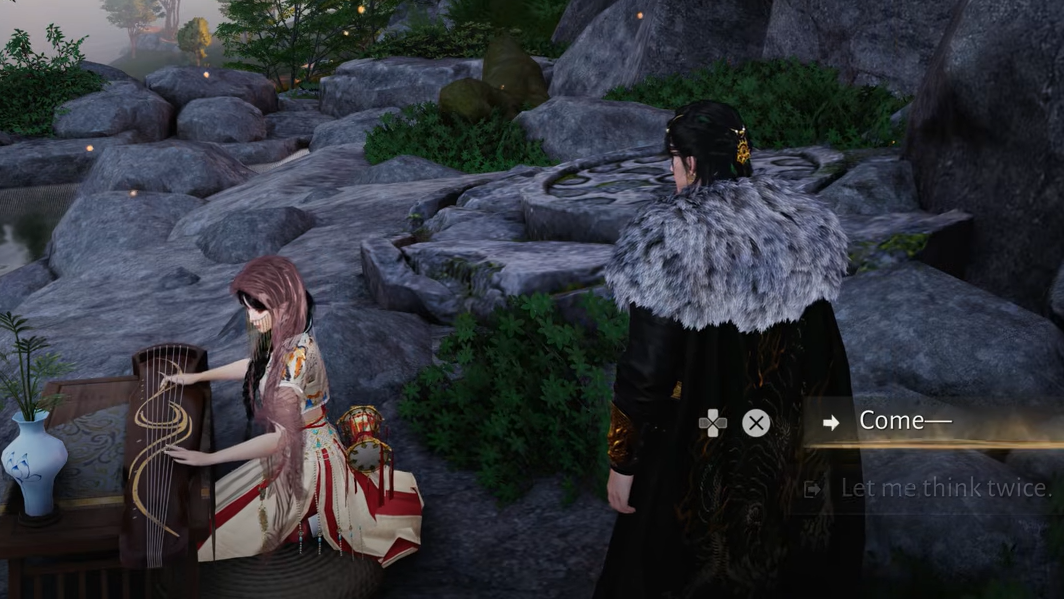 Step 2: Travel to Crimson Cliff and find the NPC Weeping Makeup, who sits on a rock near a pond. Present your Invitation Letter.