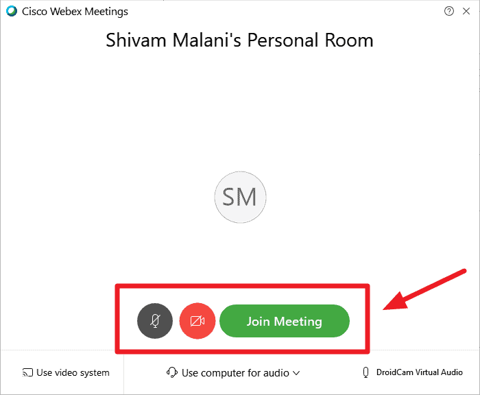 At this stage, the WebEx meeting window will open, enabling you to configure your microphone and camera settings before joining. To mute your microphone, click on the 'Mic' icon; to disable your video, click on the 'Video' icon, especially if the host prefers participants to join without video.