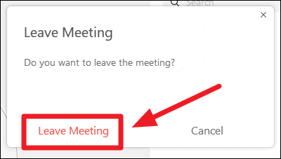 A confirmation dialog will appear. Click on the 'Leave meeting' option to confirm and exit the meeting room.