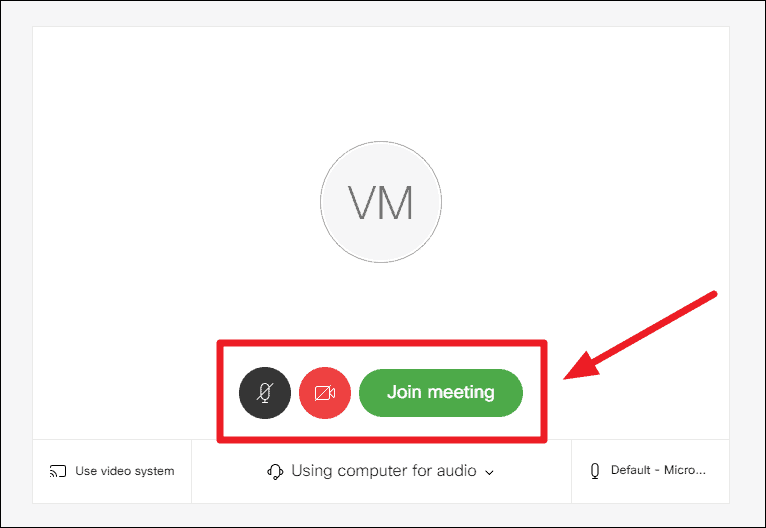 Before joining, you can adjust your microphone and camera settings. Click on the 'Mic' icon to mute yourself or the 'Video' icon to turn off your camera, if necessary.