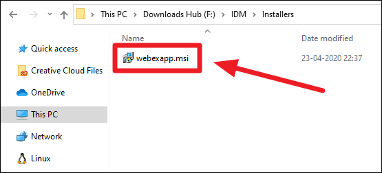 Once the download is complete, locate the installer file, typically named webexapp.msi, in your downloads folder. Double-click on it to initiate the installation process.
