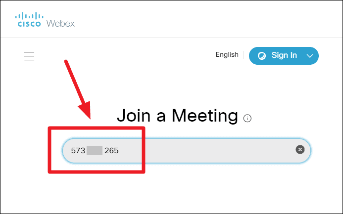 If you've received a WebEx meeting number as your invitation, open meetingsapac.webex.com in your web browser and enter the meeting number into the input field.
