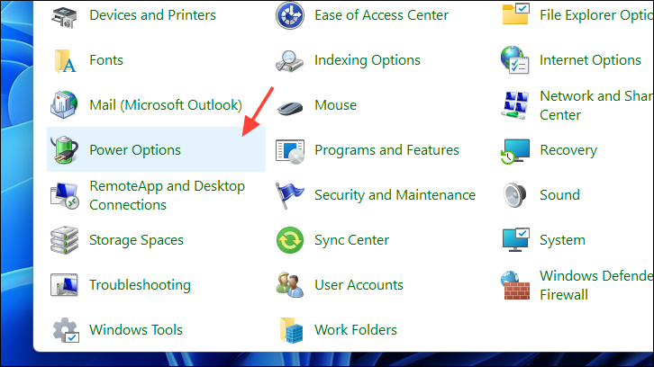 - In the Control Panel, set the View by option to Large icons or Small icons, then click on Power Options.