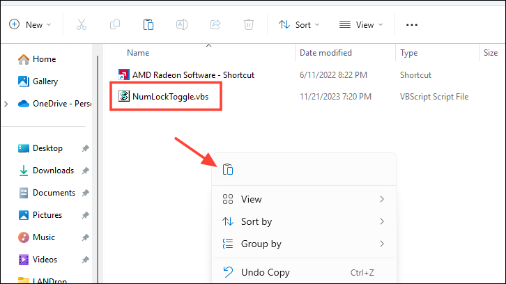 - Paste the script into the Startup folder by pressing Ctrl + V or right-clicking and selecting Paste.